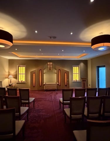 Our purpose-built funeral home in Greencloyne offers a calm, welcoming environment with two chapels, a family room and ample parking. It was designed to be both modern and comfortable, with energy-efficient heating throughout and a warm, homely atmosphere.